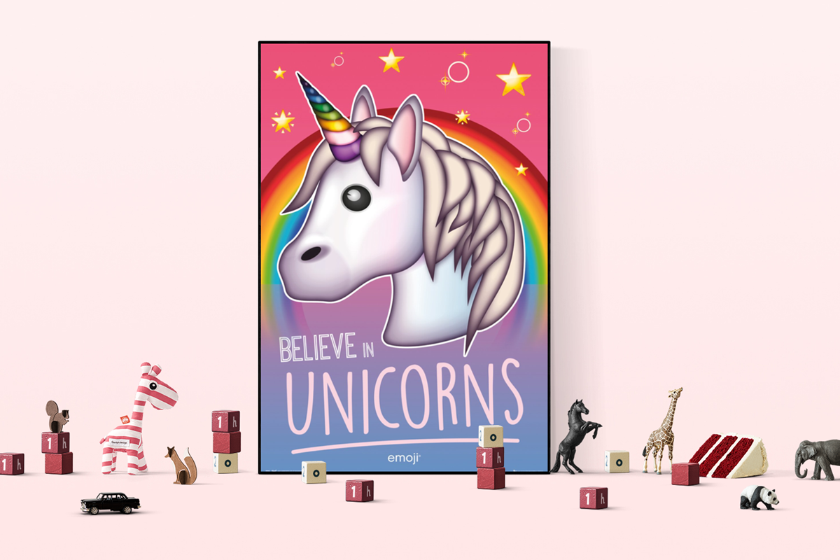 Do you believe in Unicorns? Let the whole world know you do with this amazing brightly coloured poster. Rainbows, Unicorns and Stars; what else do you need to have on a poster? This Emoji poster is perfect for anyone with Unicorns on the mind.