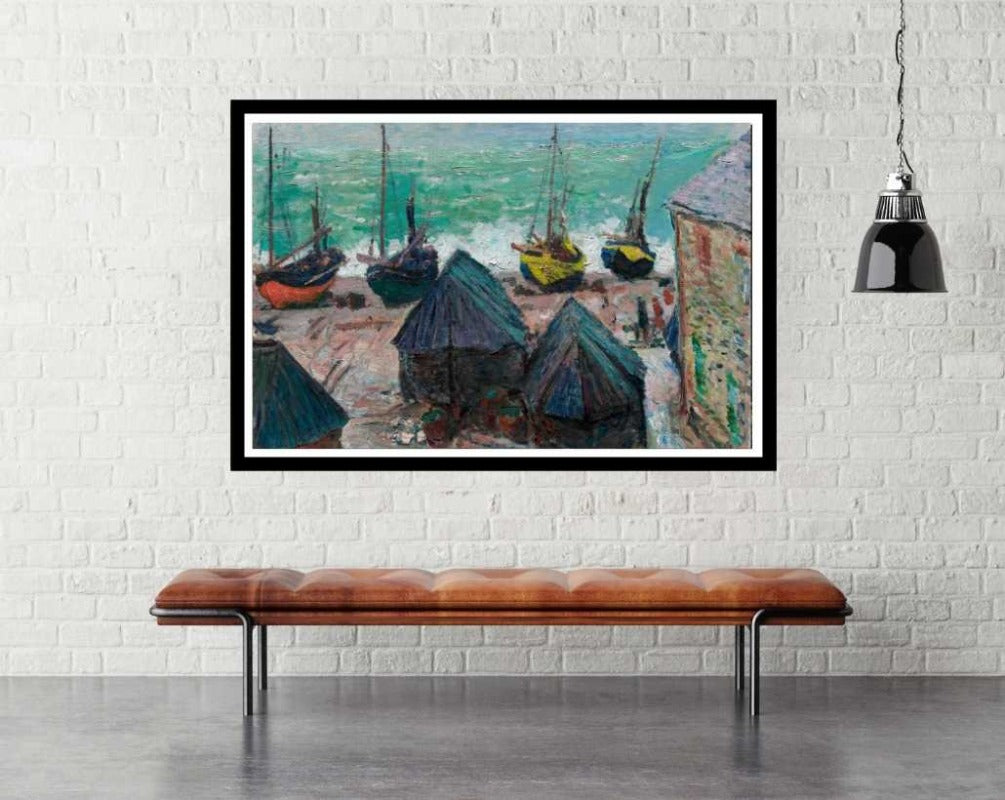 Boats on the Beach at Étretat by Claude Monet- Art Poster