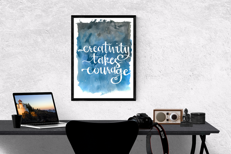 "Creativity takes courage" doesn't that say so much. This amazing print, with this inspirational phrase set on a watercolour background, is perfect for your office or home.