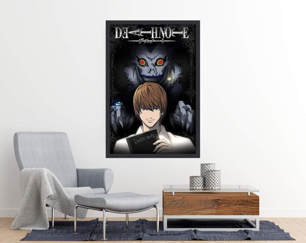 A high school student discovers a supernatural notebook that has deadly powers. He can kill anyone he wishes simply by inscribing their name within its pages. Intoxicated with his new power, he begins to eliminate those he deems unworthy of life. If you love the series this is the perfect fans poster.