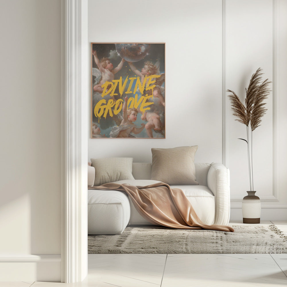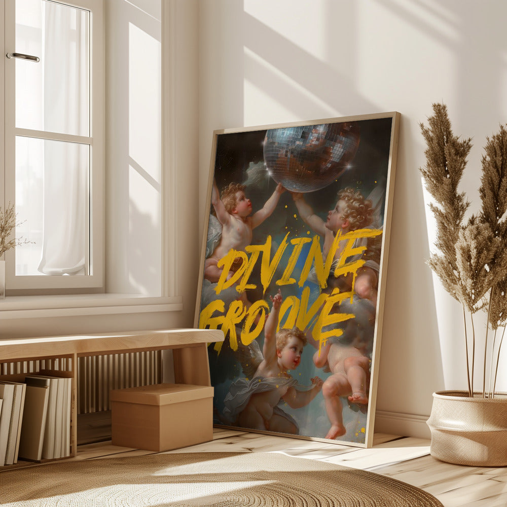 Looking for something a little different, something that grabs attention! You will love this poster featuring modern typography over renaissance classic art. Match it with other abstract art posters from our collection to bring your walls to life
