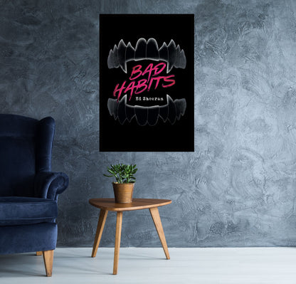 This poster features world superstar and best-selling music artist Ed Sheeran's biggest new hit Bad Habits. It was released on 25 June 2021, "Bad Habits" was a commercial success, peaking at number one in 28 countries including Australia, Belgium, Canada, Germany, Hungary, New Zealand, Switzerland and South Africa, becoming the official first number-one hit on the newly launched South African music charts.