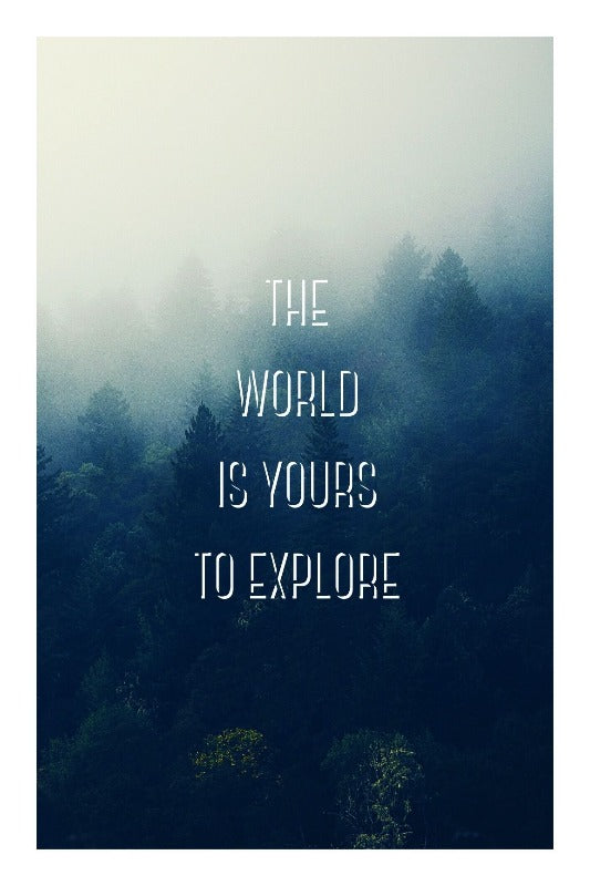 This amazing poster of fog over the trees in a forest includes the phrase "The World Is Yours to Explore" - It's perfect for the nomadic wanderer in us all.