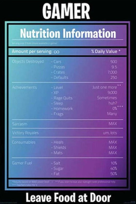 Gamers - Nutrition Panel Poster