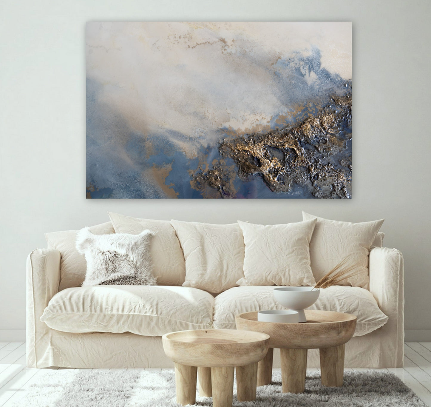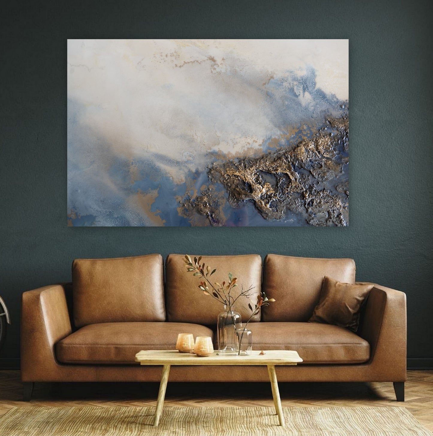 She rarely follows conventional art methods and has developed techniques that creates different effects to closely resemble reef and ocean like formations. The texture is the exposed reef and rocks, the water is the liquid paint, the spray bottle is the force of nature like rain, the hairdryer is the wind, the blowtorch is the sun, the gravity (tilting the board this way and that) is the tide.