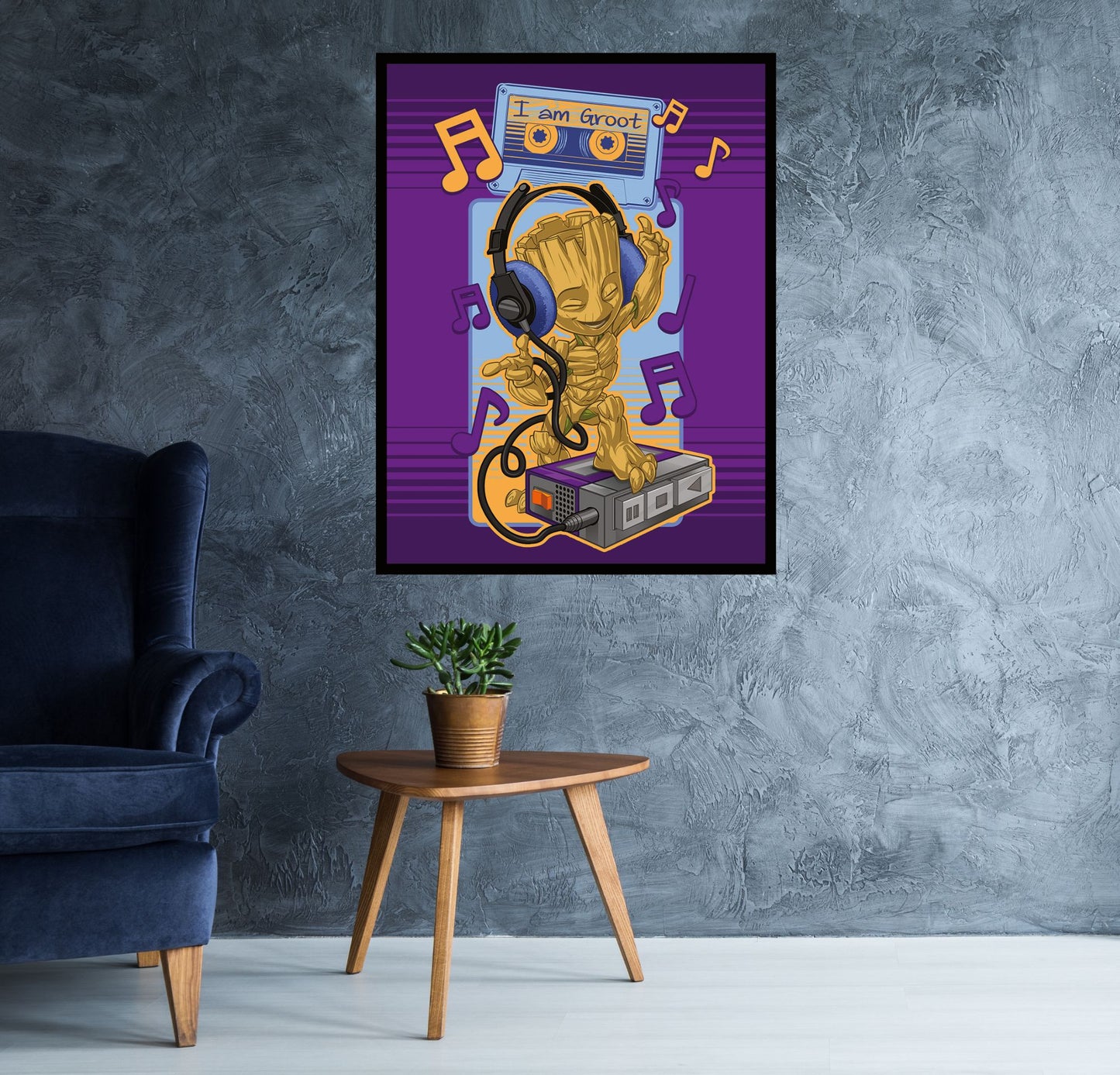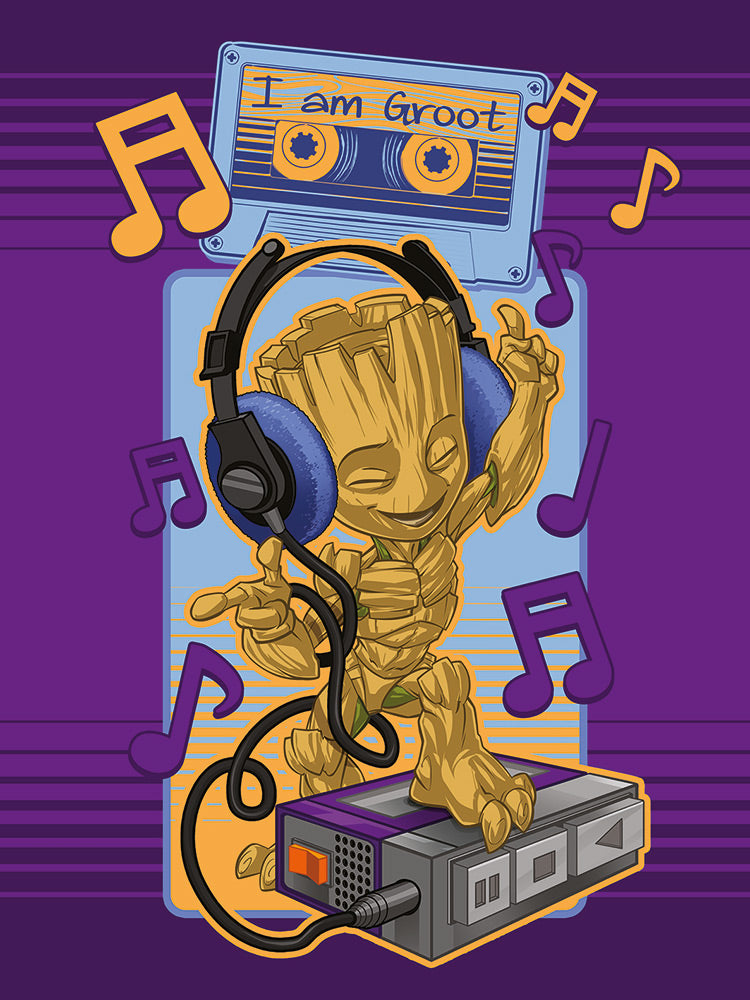No one can quite groove it like our little Groot, this guardian of the galaxy just can't help but move his twiggy arms and feet when a good beat comes on! Feeling the retro vibes he and Quill love so much, this fantastic poster is pumping out so much positivity, just like in the epic Guardians movies. Stick on the awesome mix volume 1 or 2 and let it take you to the stars and back, you'll have so much fun with Groot rocking out on whatever wall you choose to feature him.