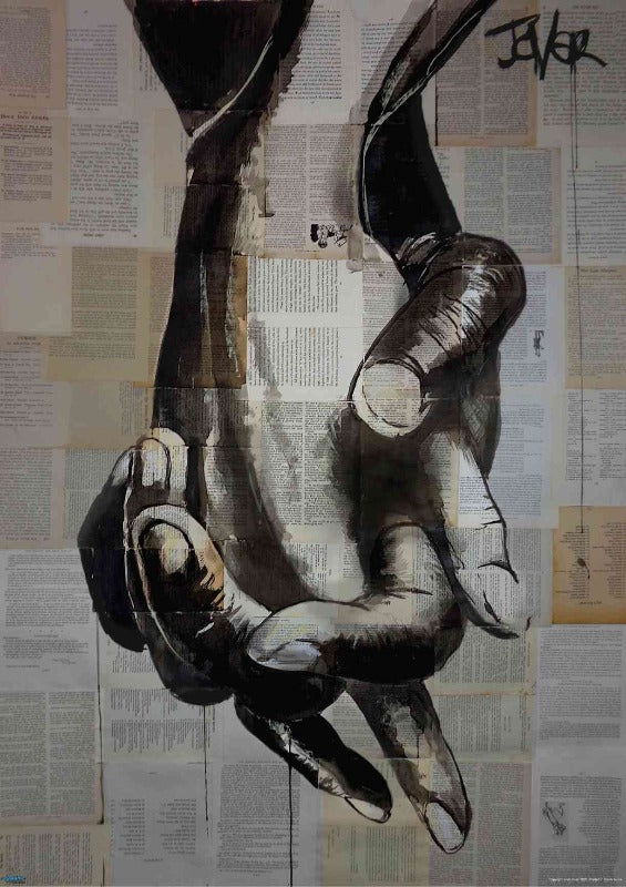 This amazing print showcases one of Jover's amazing pieces, featuring people holding hands.