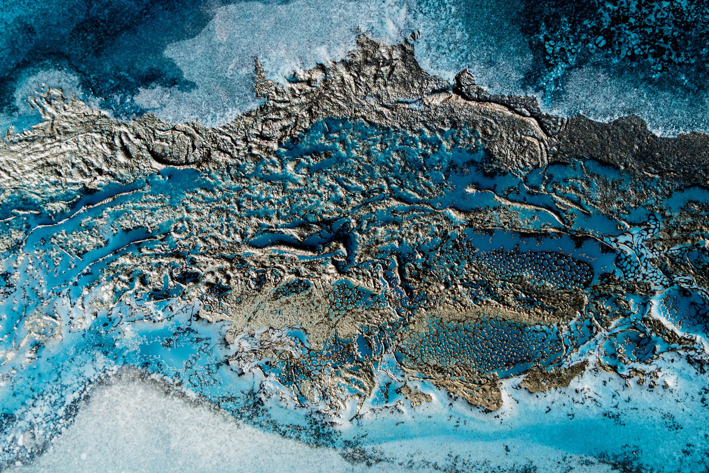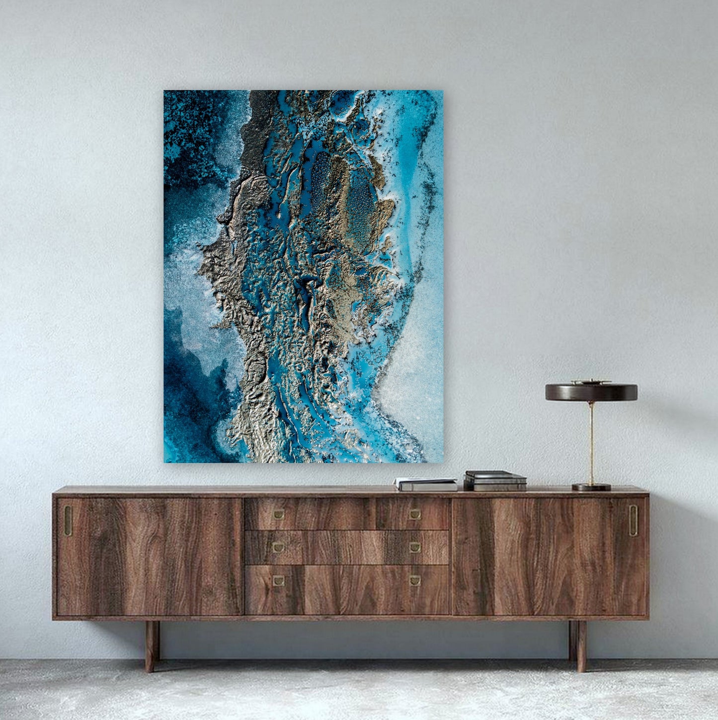 She rarely follows conventional art methods and has developed techniques that creates different effects to closely resemble reef and ocean like formations. The texture is the exposed reef and rocks, the water is the liquid paint, the spray bottle is the force of nature like rain, the hairdryer is the wind, the blowtorch is the sun, the gravity (tilting the board this way and that) is the tide.