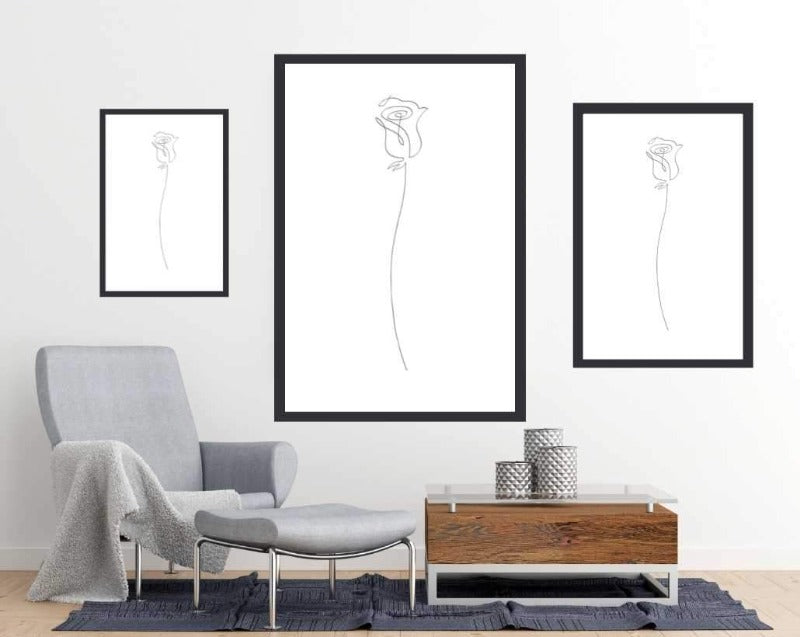 Amazing simplistic line of a single rose drawn with 1 single line. This simple yet elegant piece is perfect for any wall.
