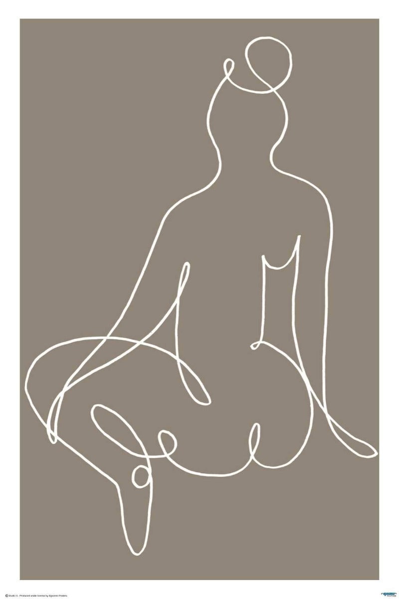 Amazing line drawing of the nude back of a woman sitting down drawn with a single line. This simple yet elegant piece is perfect for any wall.
