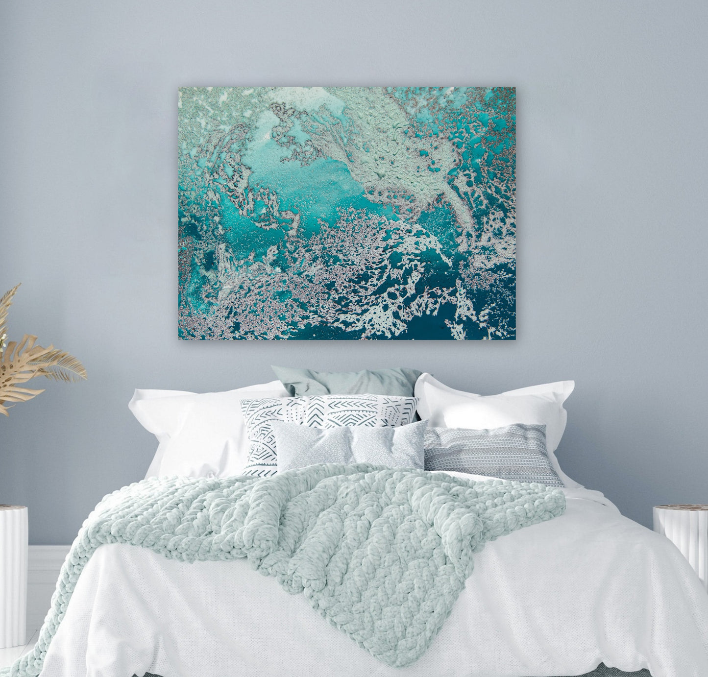 She rarely follows conventional art methods and has developed techniques that creates different effects to closely resemble reef and ocean like formations. The texture is the exposed reef and rocks, the water is the liquid paint, the spray bottle is the force of nature like rain, the hairdryer is the wind, the blowtorch is the sun, the gravity (tilting the board this way and that) is the tide.