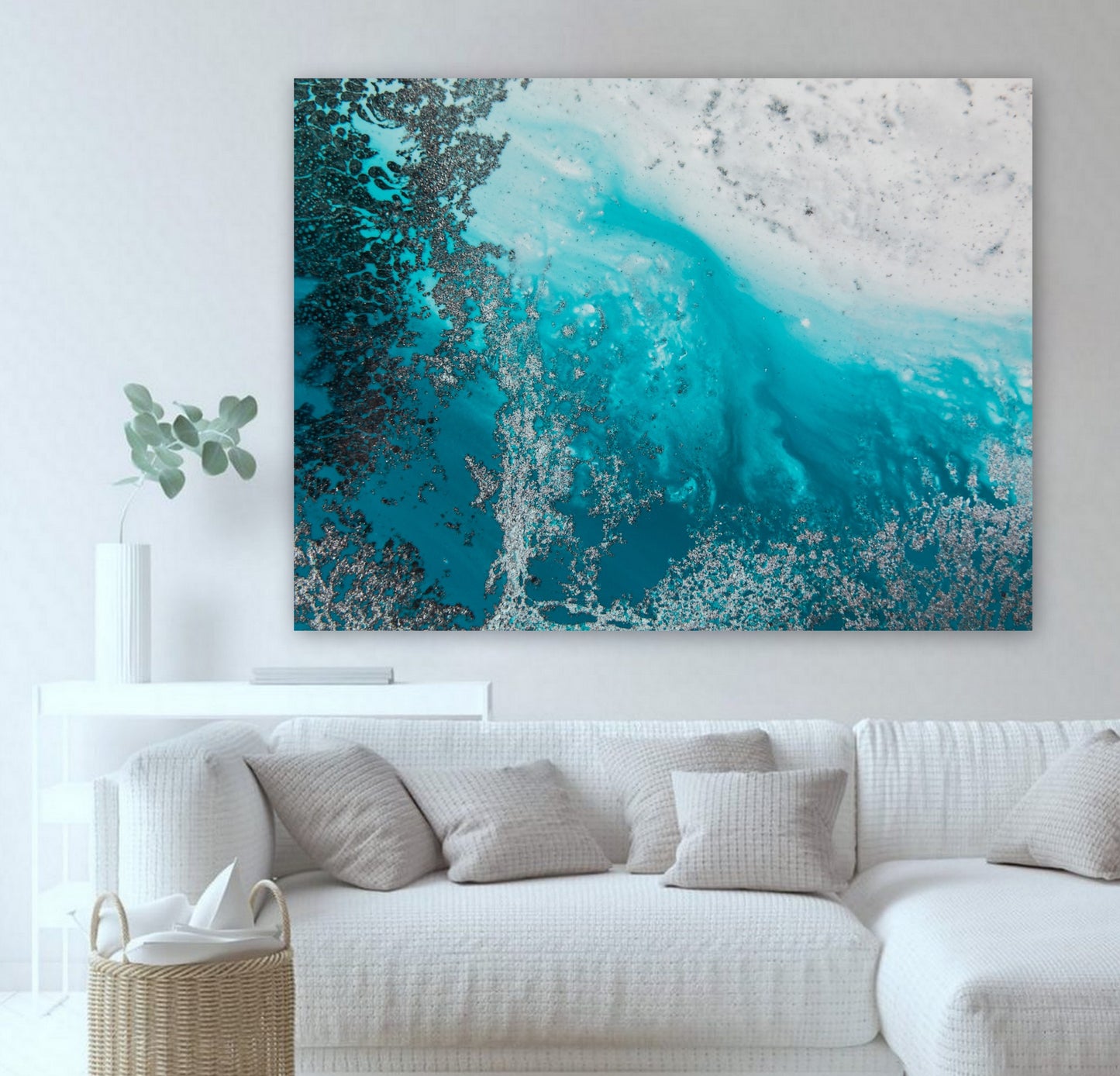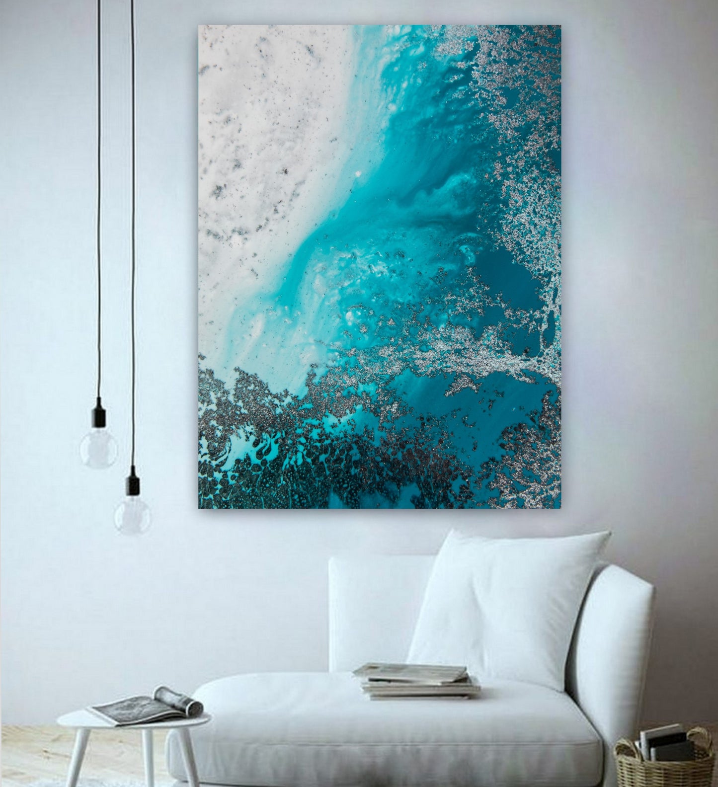 She rarely follows conventional art methods and has developed techniques that creates different effects to closely resemble reef and ocean like formations. The texture is the exposed reef and rocks, the water is the liquid paint, the spray bottle is the force of nature like rain, the hairdryer is the wind, the blowtorch is the sun, the gravity (tilting the board this way and that) is the tide.